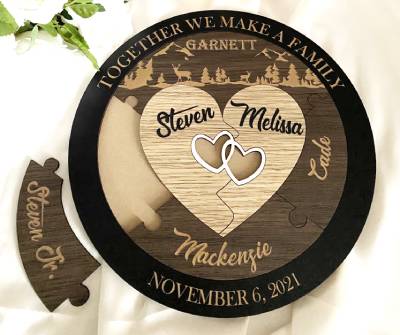 Generally, toward the end of the ceremony, each family member brings forward their piece of the puzzle and fits it together. Sometimes puzzle pieces need to be worked a little to fit into place (another wonderful metaphor for the ups and downs of family life). But when the pieces are locked together—side by side—the whole is more beautiful and stronger than any single piece on its own.